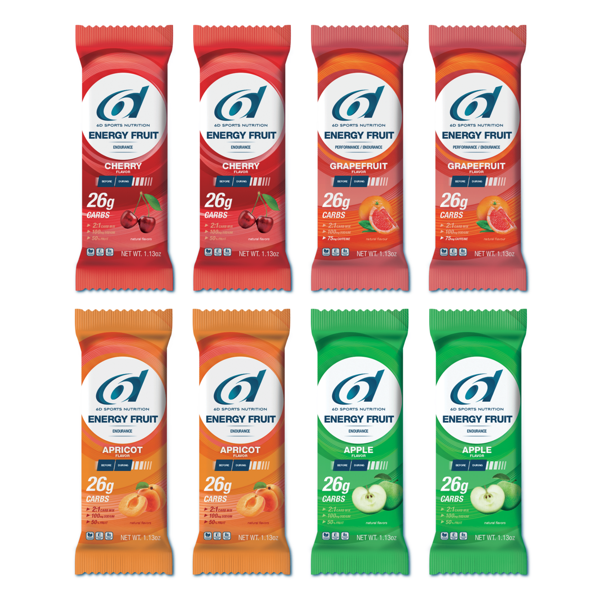 Want some variety in your life? These Energy Chews are an amazing fueling alternative to gels. This product falls somewhere between a gel and an energy bar in terms of texture, providing a tasty option that's 50% fruit. You get 3 x Cherry and 3x Grapefruit (75mg of caf), 2x Apricot and 2x Apple.