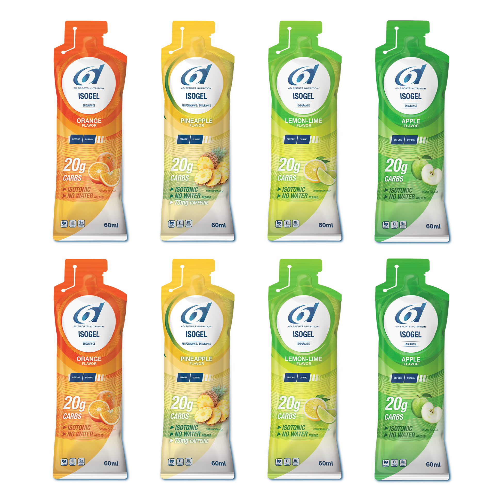 There's no better way to start testing gels than with an isotonic one. The Iso Gels from 6d are a light and refreshing take on the standard gel. You get 2 x Orange, 2 x Lime, 2 x Apple, and 2 x Pineapple (75mg of caf).