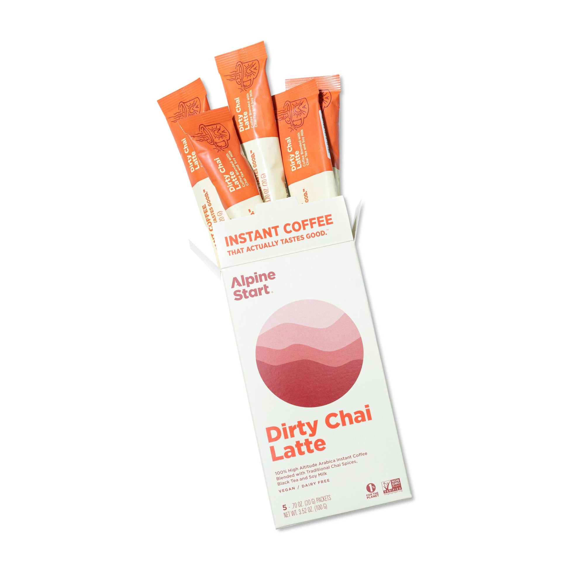 Inspired by their world travels, Alpine Start doesn’t just stop at making a good cup of coffee. They brewed all the spices, boldness, and creamy flavors of the best 100% Colombian Arabica coffee, traditional chai spices, black tea, and soy milk into an instant dirty chai latte mix. Wow.