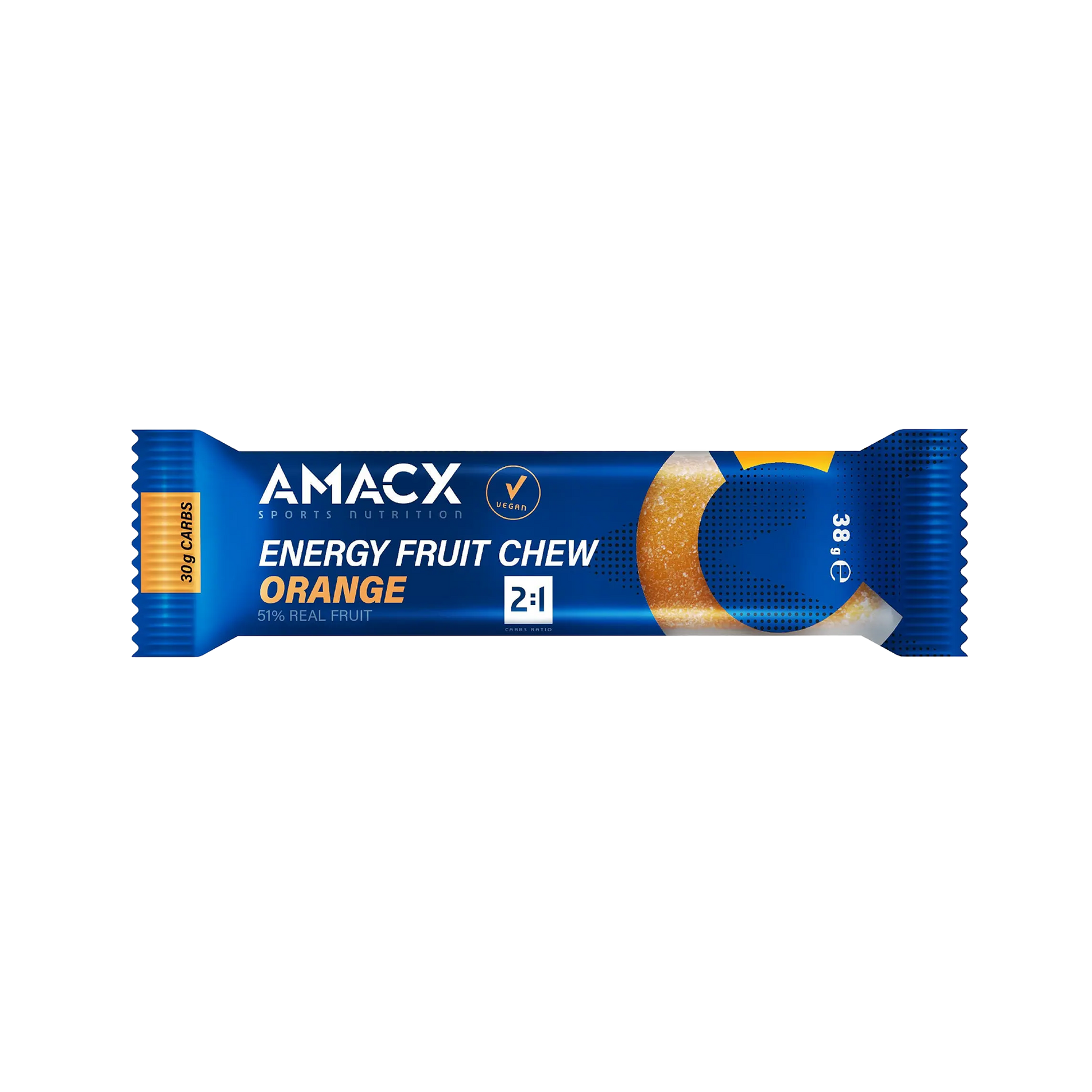 Amacx Energy Fruit Chew is the perfect variety for your training days. With an updated recipe, this chew contains no less than 30g of carbohydrates in a 2:1 carbohydrate ratio in one tasty, chewy bar.