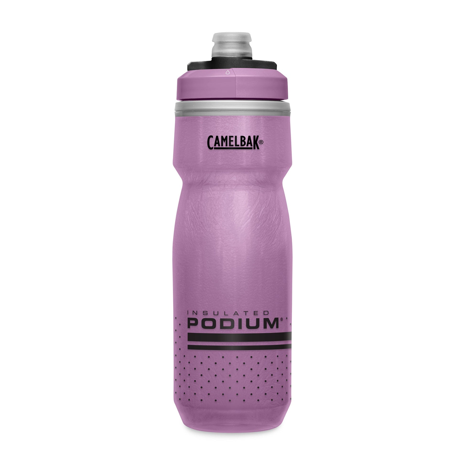 The Podium line fits most bottle cages out there and has an easy squeeze design, so you can get more liquid with less effort. Plus, with the self-sealing cap, you won't have to worry about spills or splatters. The on/off valve is super handy, too – it locks tightly to prevent leaks during transport.
