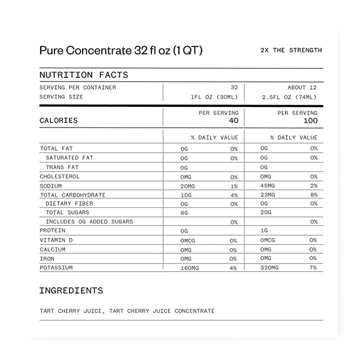 This little gem packs a health and performance-enhancing punch. The Pure is just tart cherry juice. This is the highest antioxidant strength product they offer and is 100% tart cherries.