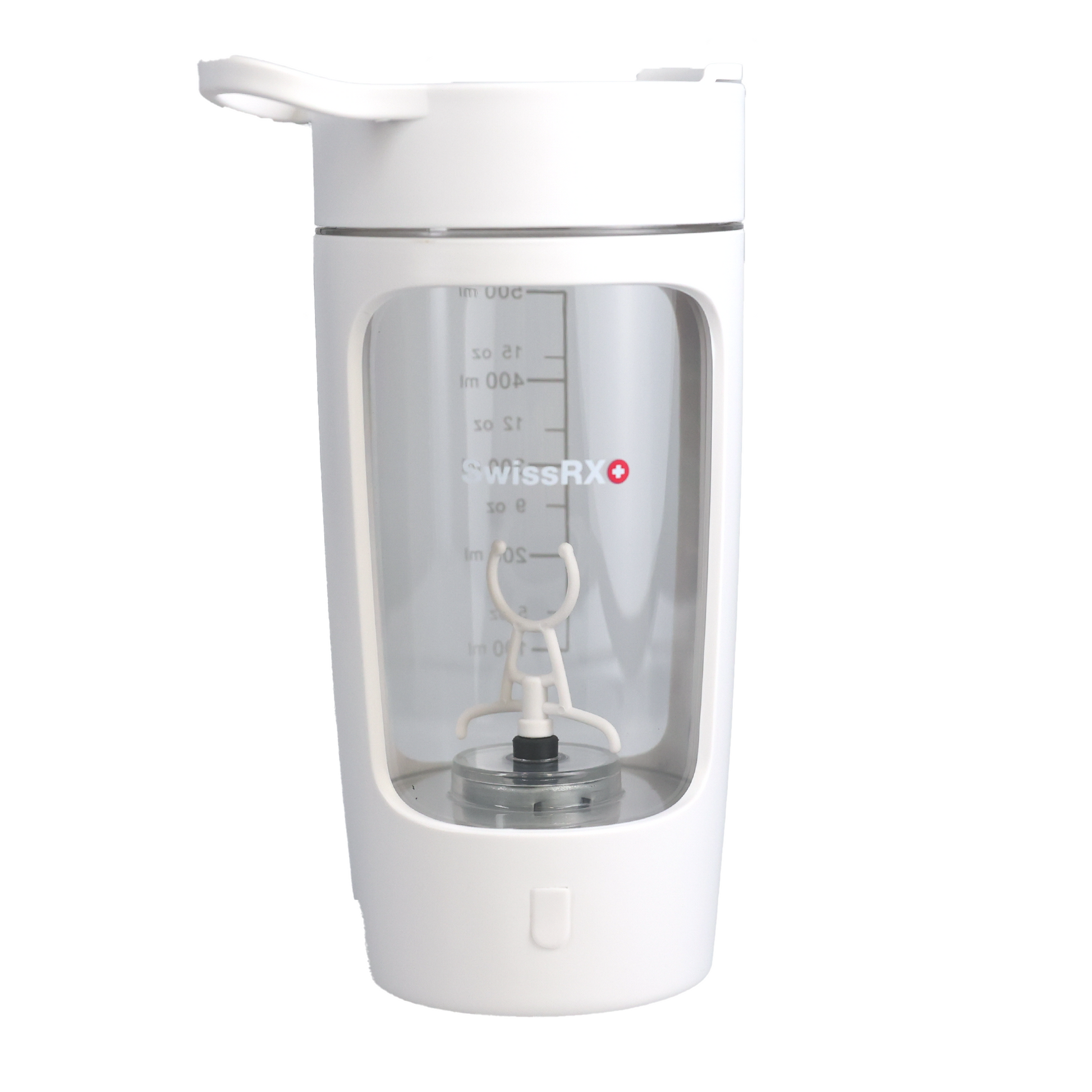 SwissRX Recovery is best consumed after blending, so now you can easily make your recovery shake with this sleek portable blender.