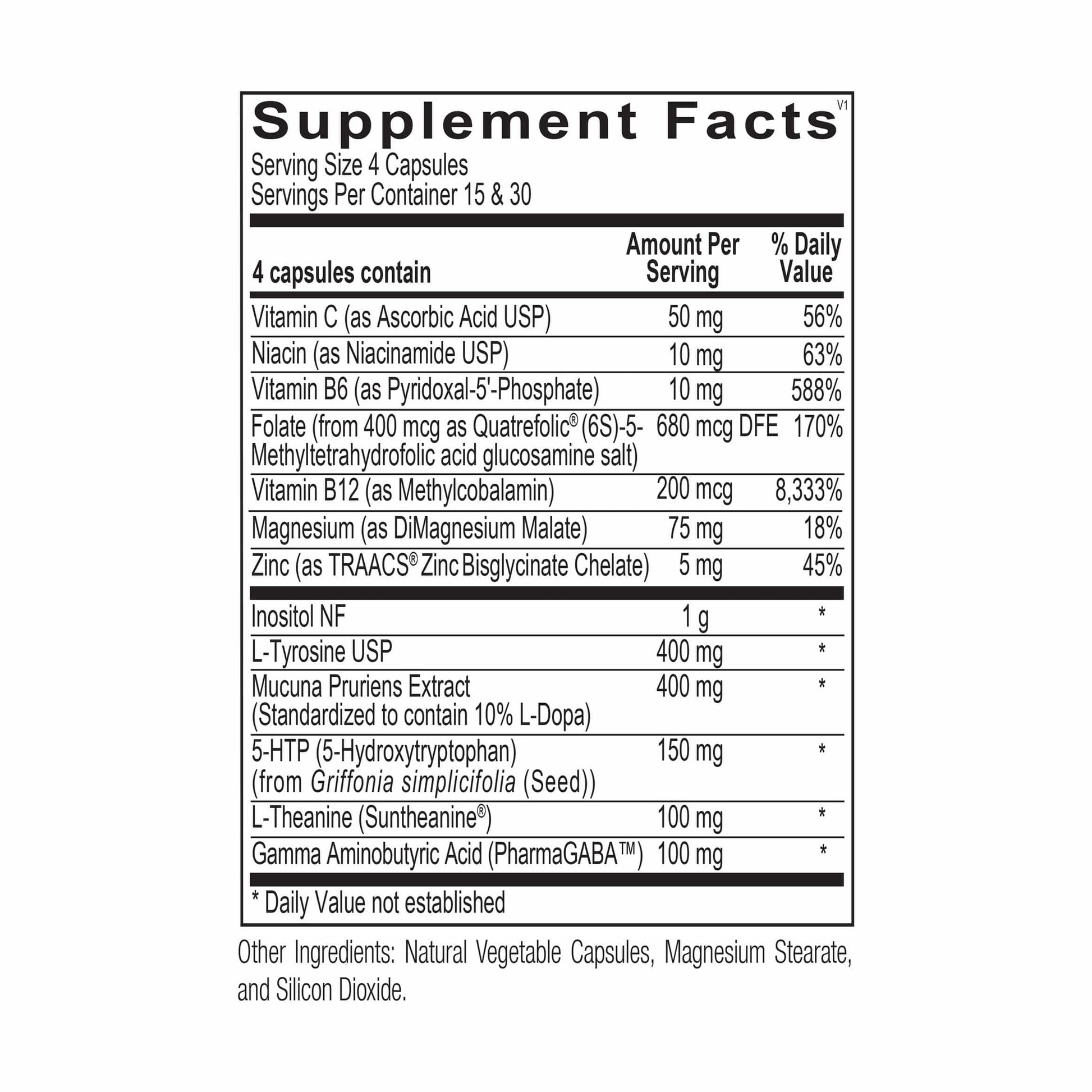- Various nutrients required for pathways synthesis for the neurotransmitters serotonin, GABA, dopamine, norepinephrine, and epinephrine. This includes 5-methyltetrahydrofolate (5-MTHF), vitamin B6, vitamin C, zinc, and magnesium. 5-MTHF is the biologically active form of the B vitamin folic acid, which is vital to supporting proper mood regulation. 5-MTHF works together with B12 as a methyl group donor. Methyl (CH3) group donation is important for maintaining neurotransmitter synthesis. Magnesium is a mineral that calms the nervous system by binding to glutamate receptors, which reduces excitatory neurotransmitter activity.