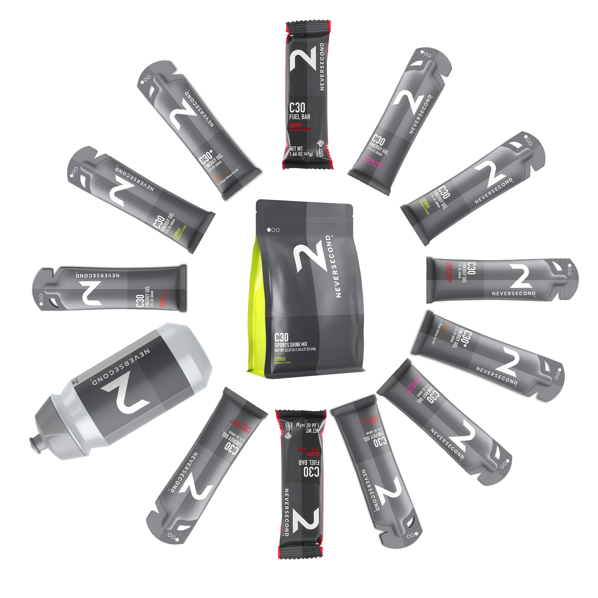 Neversecond has perfected their fueling system by providing athletes with carbohydrates and sodium all within one product. They have simplified it down to 1 unit = 30 grams of carbs and 200mg of sodium (except the C90 drink mix, which has 90g of carbs and 200mg of sodium). This allows athletes to dial in their exact fuel and electrolyte needs no matter the duration, intensity, or heat they may face on race day.