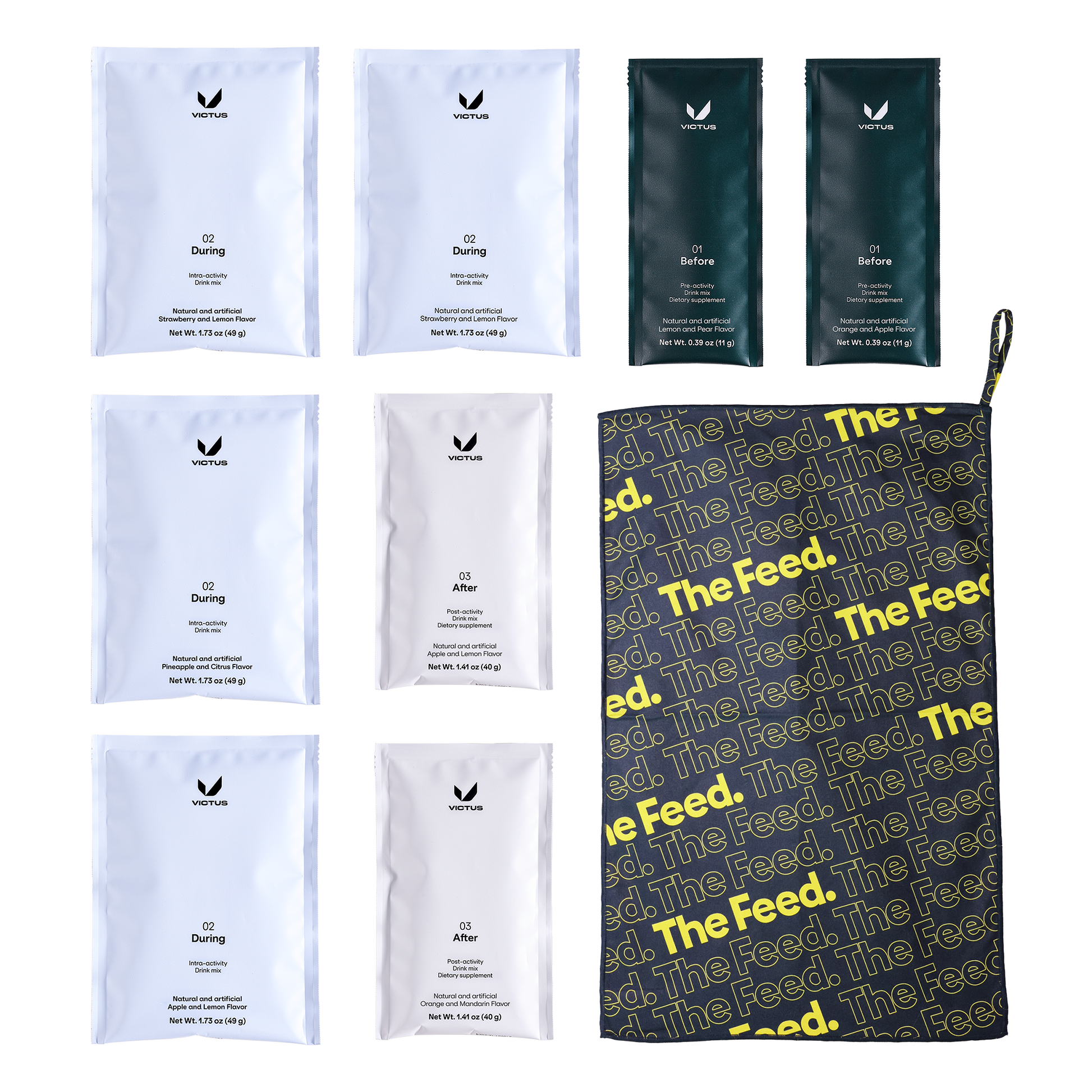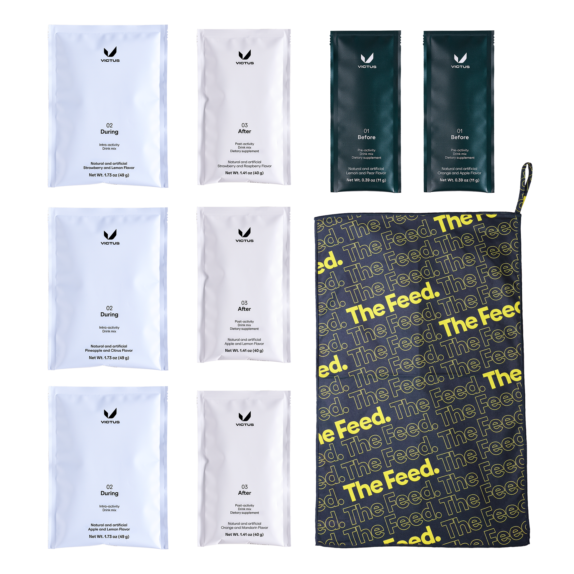 Are you looking to try the full Victus ecosystem? This sampler has all of their drink mixes for every phase of your nutrition plan. We've also included a free microfiber sweat towel!